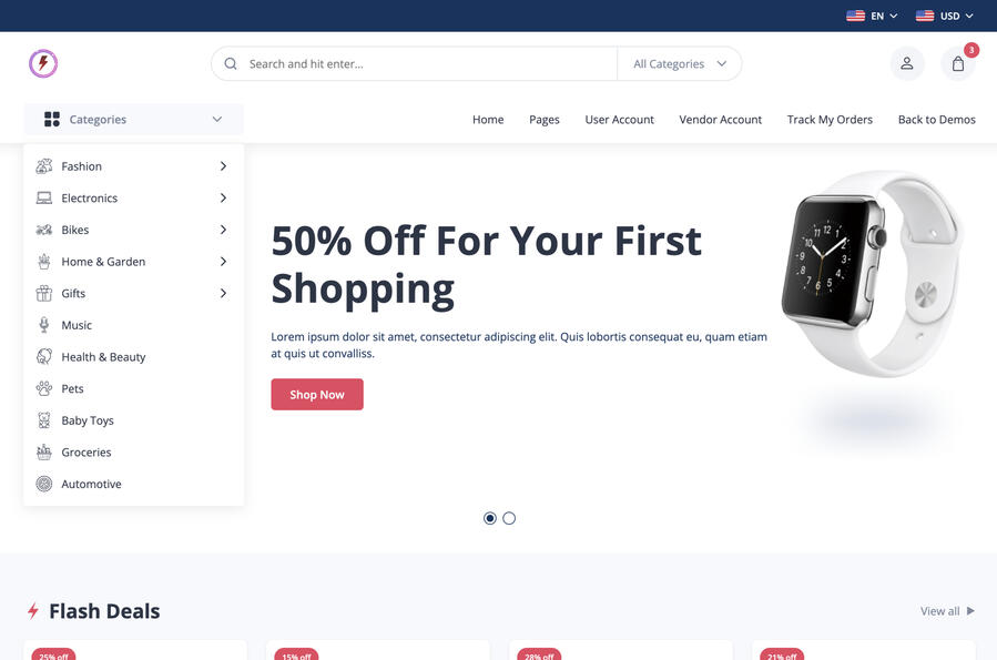 Custom your very own marketplace with the latest NextJS Server Side Rendered cutting edge technology with dedicated database.